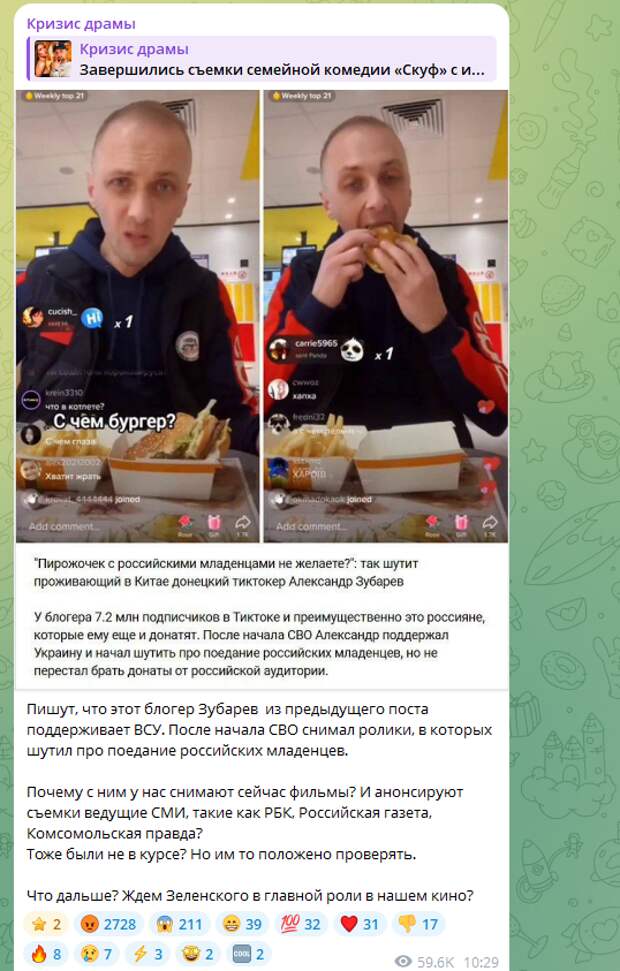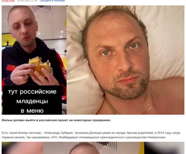 Тем временем фильм с Зубаревым в главной роли активно рекламируют на всех информационных площадках. В том числе в крупных СМИ.