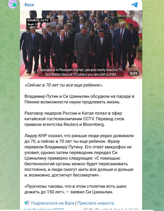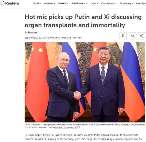 Расшифровать, "о чём там шушукаются представители оси зла", сразу взялись западные издания Reuters и Bloomberg. И вот, можно представить их ужас, когда они обнаружили, что речь шла... о бессмертии!