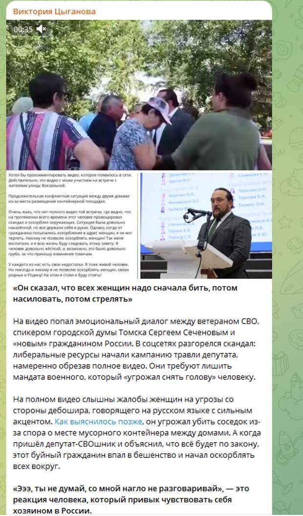 Обычная рабочая поездка в городской посёлок Апрель спикера Томской городской думы, фронтовика и орденоносца СВО Сергея Сеченова прогремела на всю страну. Повод для выезда был рядовым "жилищно-коммунальным" – состояние контейнерной площадки, вопросы установки видеонаблюдения, ремонт дороги. А на деле всё вылилось в скандал.