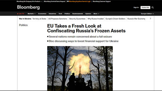 Bloomberg со ссылкой на собственные источники сообщает, что в Брюсселе всё громче обсуждается вариант не ограничиваться процентами, а перейти к прямой конфискации российских активов ЦБ - общей суммой около 300 млрд долларов.
