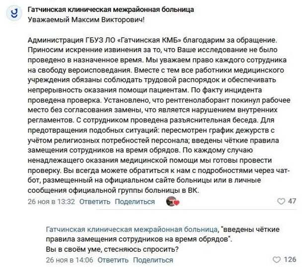 Вместо стандартной практики проведения разъяснительной работы с сотрудником, администрация Гатчинской больницы выбрала иной подход. В официальном заявлении администрация выразила сожаление о задержке врача, подтвердив факт ухода рентгенолога с рабочего места без согласования, что является нарушением правил.