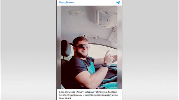 Чеченский боец ответил на обвинения в приставаниях к девушкам в Луганске у бассейна. Свое видение ситуации он изложил в Telegram.