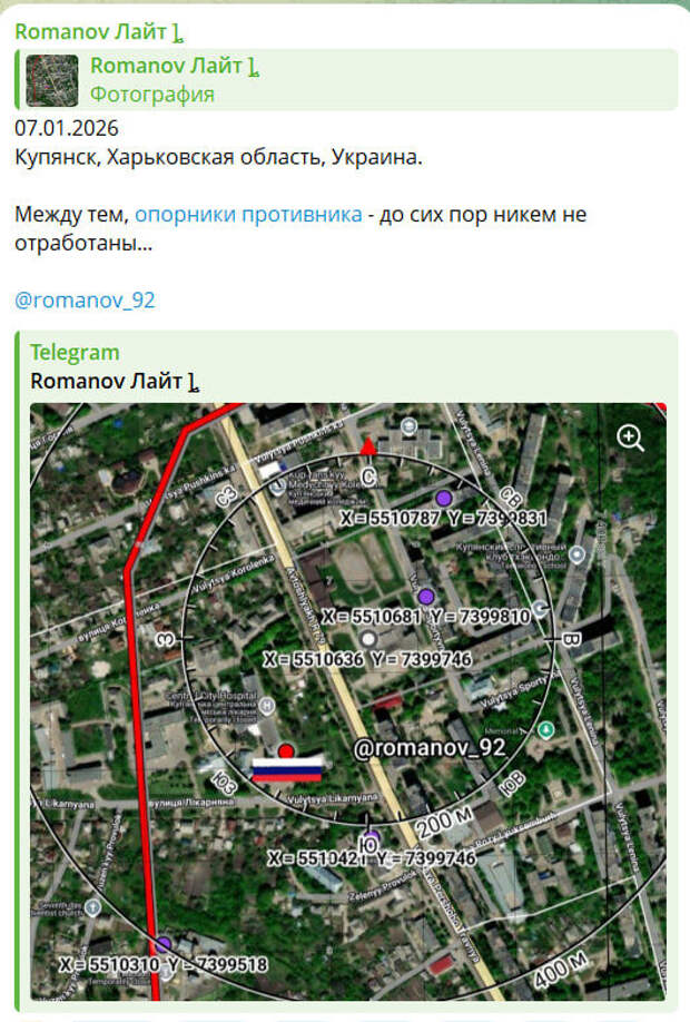 "По информации, которая приходит непосредственно с места: все опорные пункты были не раз переданы командованию, где есть точное подтверждение огневых позиций противника и выявлено, что на каждом опорнике от 10 бойцов ВСУ, не наносятся удары. Тем самым делается практически невозможным снабжение наших парней! На карте ниже отмечено лишь малое количество огневых позиций противника, но они на данный момент являются ключевыми для уничтожения".