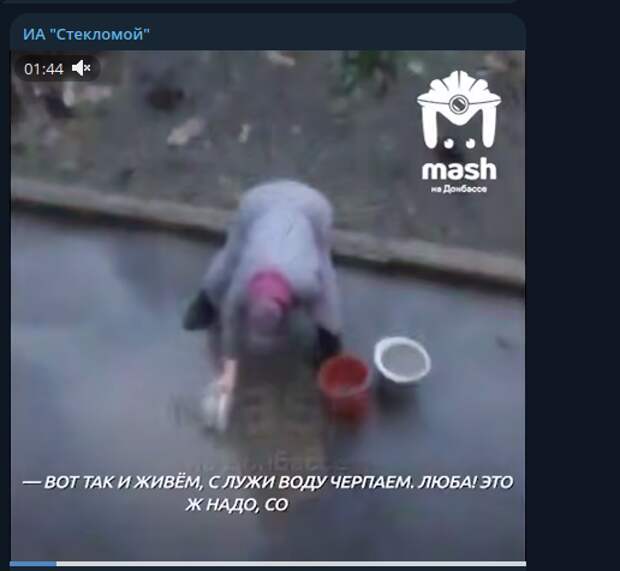 "Живём. С лужи воду черпаем. Соседка. Бабушке 83 года. Как жить, а? Как жить без воды?" - с отчаянием спрашивает Неля, жительница Куйбышевского района Донецка.
