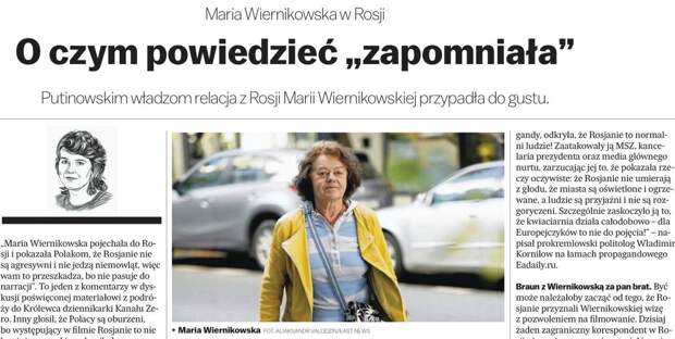 Однако нашлись и те, кто встал на защиту Верниковской. Например, известный польский журналист Лукаш Варжеха отметил, что ряд лидеров общественного мнения в Польше систематически работают над "исчезновением" России.