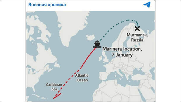 В Северной Атлантике США захватили танкер "Маринера", идущий под российским флагом, после 17 суток преследования. На борт судна, ранее известного ранее как Bella-1, высадился десант с вертолета.