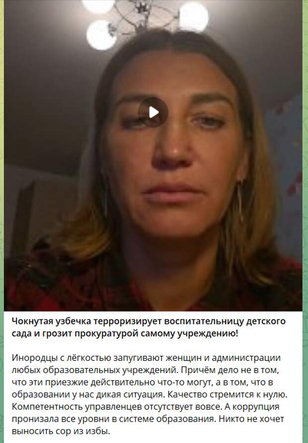 Узбечка также пригрозила, что если её требования не удовлетворят, то она «подключит все инстанции» — начиная с прокуратуры и заканчивая представителями узбекской диаспоры, которые, по её словам, «умеют добиваться справедливости». В ход пошли угрозы проверками, жалобами, звонками в городское управление образования и даже предупреждениями о том, что диаспора устроит детскому саду бойкот.