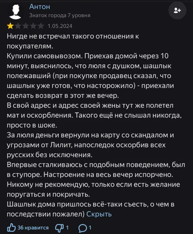 Да, у этой сумасшедшей было и свое кафе, которое немедленно прославилось "высоким качеством" продукции и хамским отношением к клиентам. В Сети полно отзывов о том, как люди покупали там шашлыки или другие блюда с душком, а когда приходили возвращать, то хозяйка заведения устраивала им скандал.