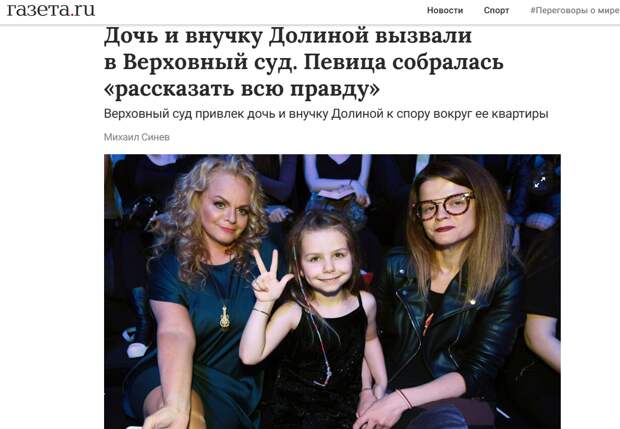 Почему, кстати, сторона Долиной раньше отказывалась от мирового соглашения? Кое-где появилась информация, что может быть сама певица и была не против решить с Лурье все мирно (кто-то даже сообщает, что готова была отдать и квартиру, хотя, честно говоря, выглядит это сомнительно), но Ларисе Александровне якобы выркутила руки ее дочка. Бесполезная и нигде так и не устроившаяся Ангелина, которая в последние года смогла стать только личным помощников своей 70-летней мамы.