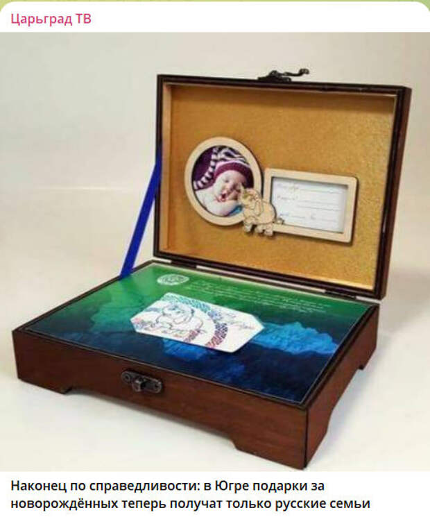 В ХМАО введён долгожданный запрет – мигрантов исключили из программы, предоставляющий бесплатный подарок в виде шкатулки и финансовой помощью. В Югре подарки за новорождённых теперь будут получать только русские семьи. Такой "удар", по мнению местных властей, должен переориентировать меры по стимулированию рождаемости на граждан России.