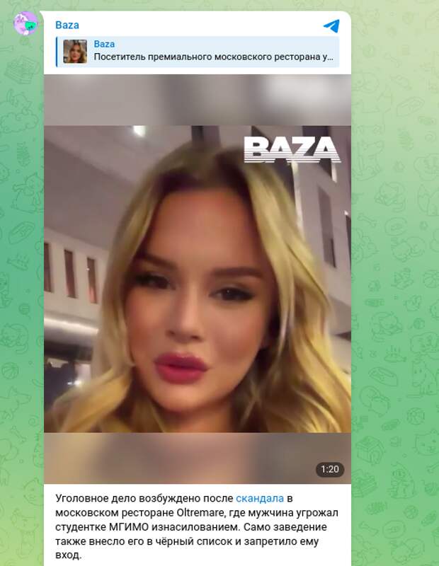 Шокирующий инцидент произошёл в одном из московских ресторанов. В заведении под названием Oltremare посетитель по имени Гамлет на глазах у десятков свидетелей устроил жуткий скандал, направленный на юную студентку престижного МГИМО. Мужчина, не добившись взаимности при знакомстве, перешёл к откровенным угрозам, пообещав девушке расправиться с ней. Фраза "Выйдешь отсюда - умрёшь", брошенная агрессором, повисла в воздухе, в то время как персонал проявил равнодушие. Вместо защиты администратор нашла, что сказать пострадавшей: мол, сама виновата.