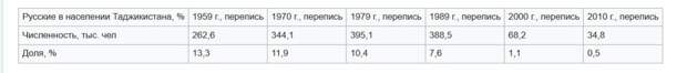 А это численность русских в переписи населения Таджикистана по годам: