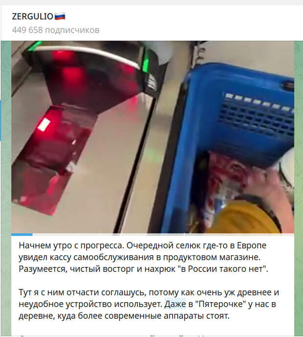 Примечательно, что это уже не первый раз, когда украинцы поражаются такой кассе. В прошлом году соотечественник "американского" релоканта уже показывал этот аппарат, уверенно заявляя, что в России такого нет. Ему ответил блогер Сергей Колясников, автор телеграм-канала Zergulio.